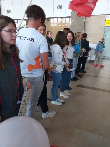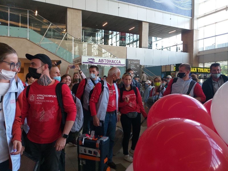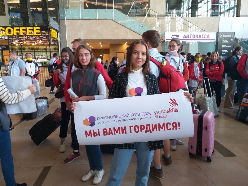 31 августа представители регионального координационного центра Движения «Молодые профессионалы» (WorldSkills Russia) Красноярского края совместно с волонтёрами-болельщиками Красноярского колледжа сферы услуг и предпринимательства торжественно встречали конкурсантов Финала IX Национального чемпионата «Молодые профессионалы» (WorldSkills Russia).