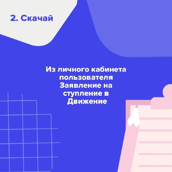 Из личного кабинета пользователя скачивай «Заявление» на вступление в Движение.