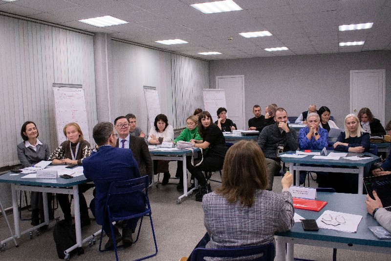 В Центре компетенций «Бизнес. Начало» Институт развития профессионального образования организовал для колледжей креативных индустрий групповую работу по доработке дорожных карт. В работе приняли участие также и.о. ректора ИРПО Наталия Золотарева, руководитель Центра развития профессионального образования в сфере креативных индустрий Иоанн Клиндухов, директор по проектам группы «Карьера в России» Сергей Галактионов, начальник отдела среднего профессионального образования министерства образования Красноярского края Людмила Казакова.