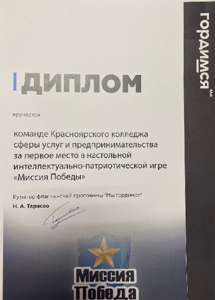 Команда Красноярского колледжа сферы услуг и предпринимательства заняла 1 место!