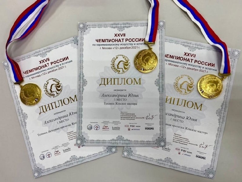 Поздравляем Юлию Викторовну Александрину с победой на XXVII Чемпионате России по парикмахерскому искусству и эстетике, который проходил 12 декабря 2021 года в Москве!