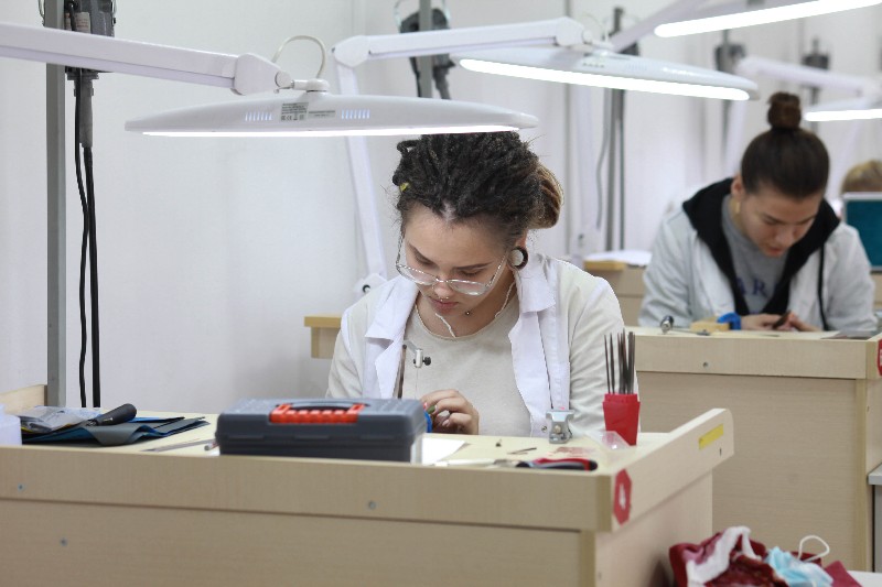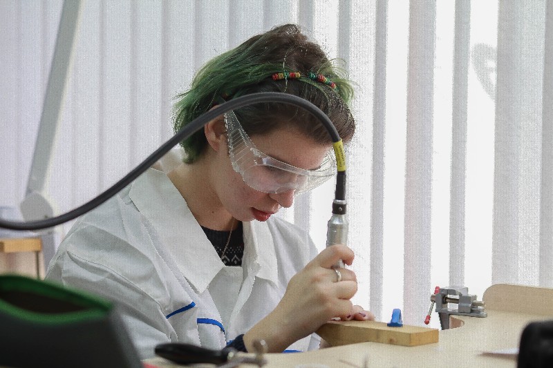 Всего в предварительных отборочных соревнованиях приняли участие студенты второго и третьего курсов профессии Ювелир – 16 человек. За 8 часов участникам необходимо было изготовить ювелирное украшение в соответствии с модулем чемпионата.