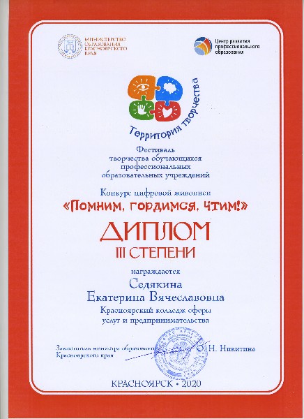 А так же мы поздравляем студентов, получивших сертификаты участников: Демеш Анастасию, Князеву Лилию, Чехову Елизавету и Малышеву Фаину.