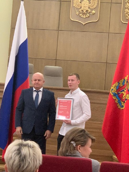 В Москве завершился Национальный чемпионат по профессиональному мастерству среди инвалидов и лиц с ограниченнымиа возможностями здоровья “Абилимпикс”. Чемпионат проходил под девизом: “Вместе-сильнее”. Сегодня, 22 ноября, в Администрации Губернатора Красноярского края состоялось торжественное награждение финалистов и победителей. Заместитель председателя Правительства Красноярского края, Подкорытов Алексей Викторович вручил обучающимся Соколовской Анне, Корытову Богдану, Шульге Сергею, Широкову Александру, а также их наставникам Комлевой Веронике Андреевне, Крынцовой Татьяне Александровне, Эвардсон Виталию Борисовичу “Красноярского колледжа сферы услуг и предпринимательства ” сертификаты за призовое место и денежное поощрение.