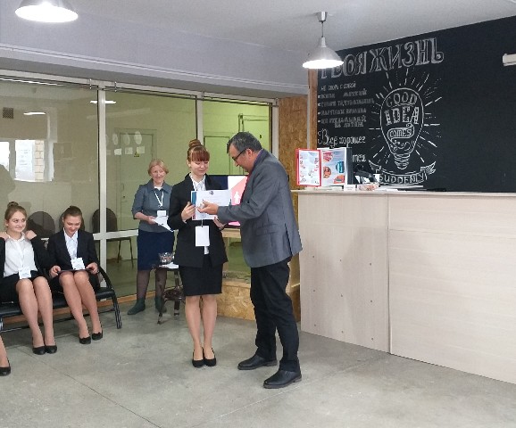 На площадке компетенции Администрирование отеля (юниоры), по завершении конкурса прошло свое награждение. Директор колледжа – Владимир Вячеславович Батурин, совместно с главным экспертом компетенции Ириной Михайловной Данилович вручили благодарственные письма всем участникам и экспертам, отметив высокий уровень подготовки конкурсантов.