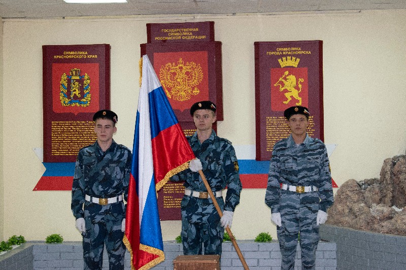 Флаг выносили члены военно-патриотического клуба, участники и призёры военно-спортивной игры «Патриот» и Спартакиады допризывной молодёжи Советского района города Красноярска!