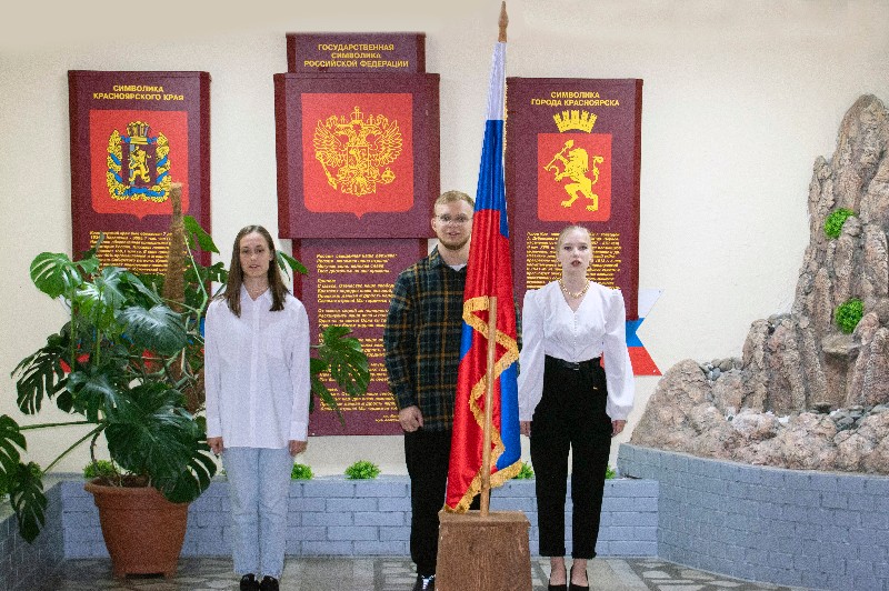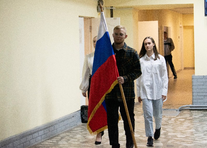 Знаменосец: Иван Королев, председатель спортивного клуба колледжа.